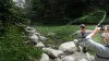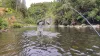 Fly fishing in Slovakia on the mountain creek full of wild brown trout which are hungry for grasshoppers.