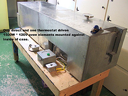 Wayne Cattanach's book details an oven plan based on a 60" mica strip heating element. The oven I use is based on that design, although I am planning to add a recirculating fan soon. Bret Reiter makes and sells a similar oven. Many rod makers use ovens powered by the same electric heat gun used for straightening nodes. One such commercial unit is available from W.J. Senecal in Monson, Massachusetts. The Rod makers web site mentioned