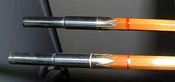 Male ferrules are usually made one or two thousandths of an inch oversized and must be honed to fit with a perfect friction fit so we get that pleasing "pop" sound when disassembling the rod. Though beginning rod makers are sometimes intimidated by this process, it really is not difficult. The key to good male-female ferrule fitting is again, work slowly and carefully.
