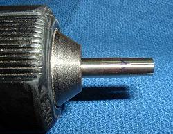 Run the motor at slow speed and be sure everything turns smoothly. Use a small piece of 400 grit sandpaper to then only the serrated tabs. Work only towards the open end of the male ferrule, concentrating on making a smooth slope. Check the progress constantly. When the open end of the ferrule tabs are paper thin, switch to 1000g paper to carefully remove the 400g sanding scratches. A few careful passes with 4/0 steel wool will bring back the mirror finish.