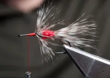 The original Racoon was tied in four sections with the tail and three hackles. Many current versions are tied with only two sections - a red and a light one - separated by a single hackle and finished with one in the front. In this configuration the fly is lighter and more airy and faster to tie, which is preferred by many.