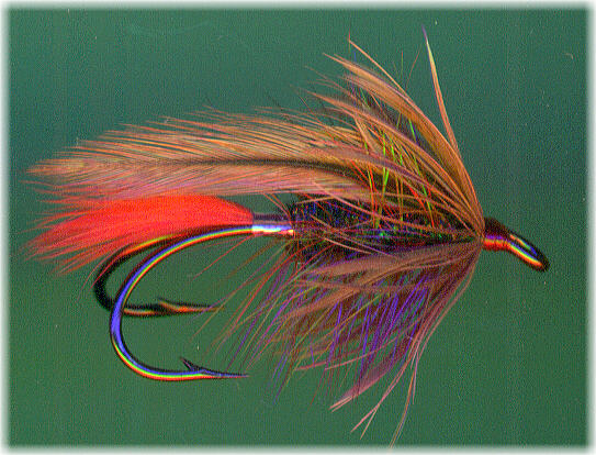 It has some resemblance with the red tag, but has been modified through decades. Locally it varies a lot: white wings, hair wings, no body hackle, composite wing with marabou. But its main features: big red tail, silver tag, peacock body and a fairly heavy soft hackle is almost found in all of them.
