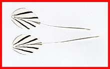 - Saddle the cheeks with the strips by pinching the strips over the hook shank and tightning the thread down over the wings. The wings should be long enough to reach a point above the hook bend