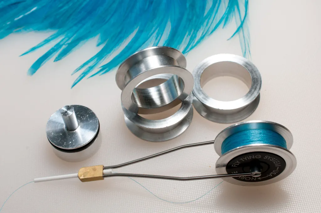 The kit comes with a bobbin holder, four spools, an arbor for spooling on thread and an instructional DVD