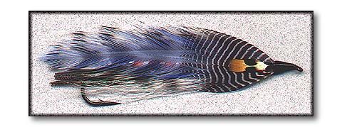 • Wing: 2 Grizzly saddle hackles flanked by 2 light blue saddle hackles