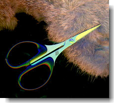 4. Squirrel and Antron - Cut the hair off a natural or dyed squirrel skin using scissors. You might want to remove some of the guard hair. Mix with approx. 1/3 white, sparkling antron yarn cut into 2/5" (1 cm) pieces in a coffee grinder.